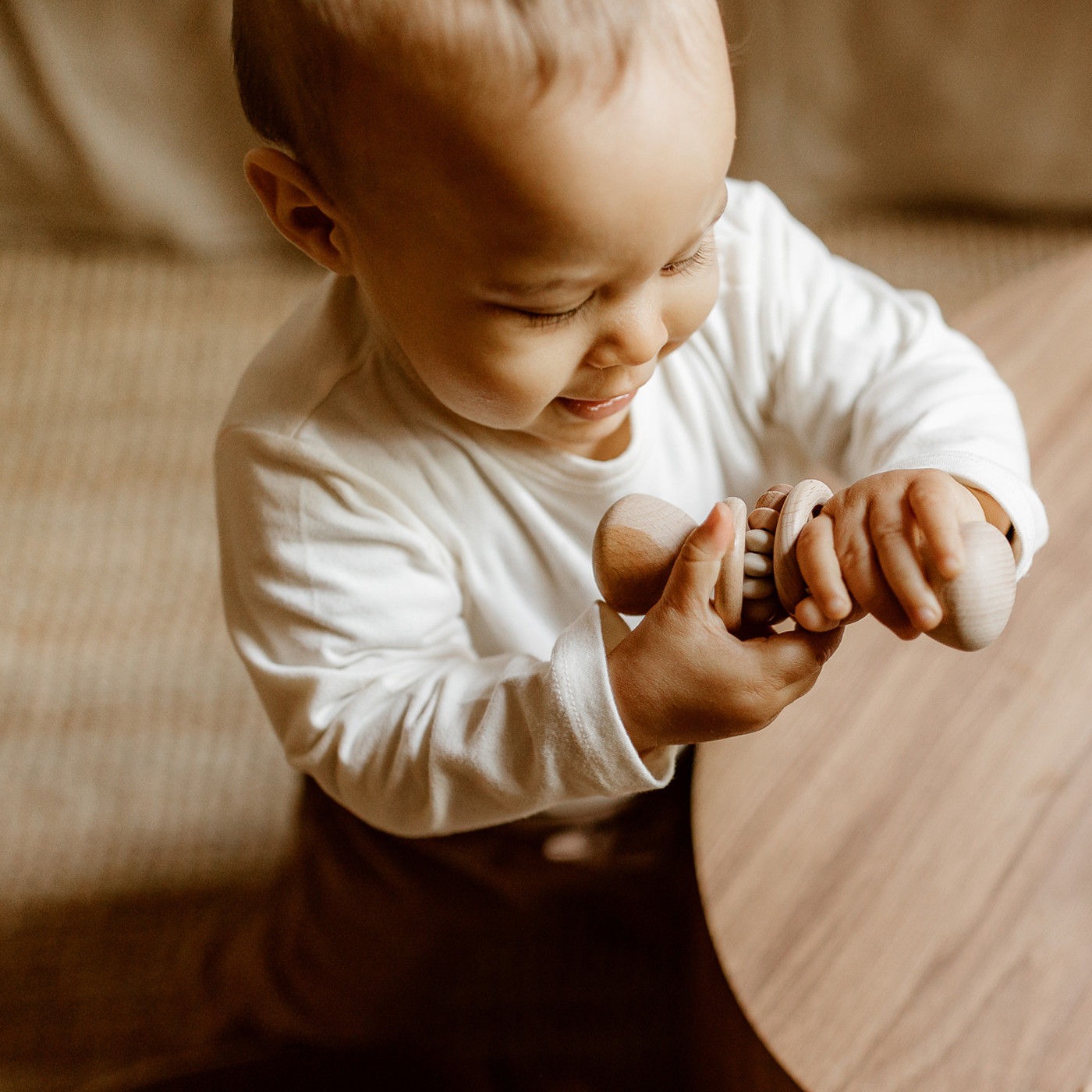 Made of beech wood and food-grade silicone, the "Cosmo II" rattle is an early learning toy that helps your baby develop fine motor skills and vision. Its materials and shape also allow it to be a precious ally to relieve baby during teething