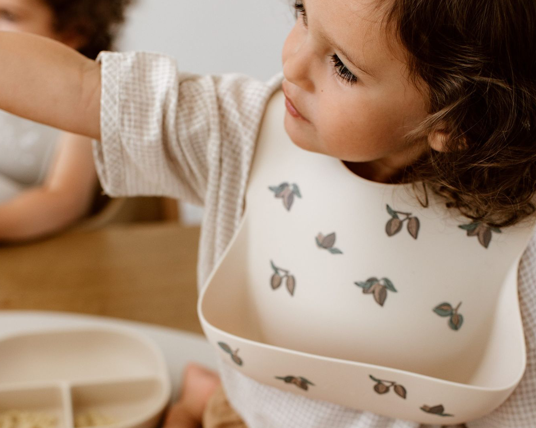 Pour garder les vêtements de votre bébé propres durant ses repas, notre joli bavoir “Amandes” aux teintes douces est idéal !