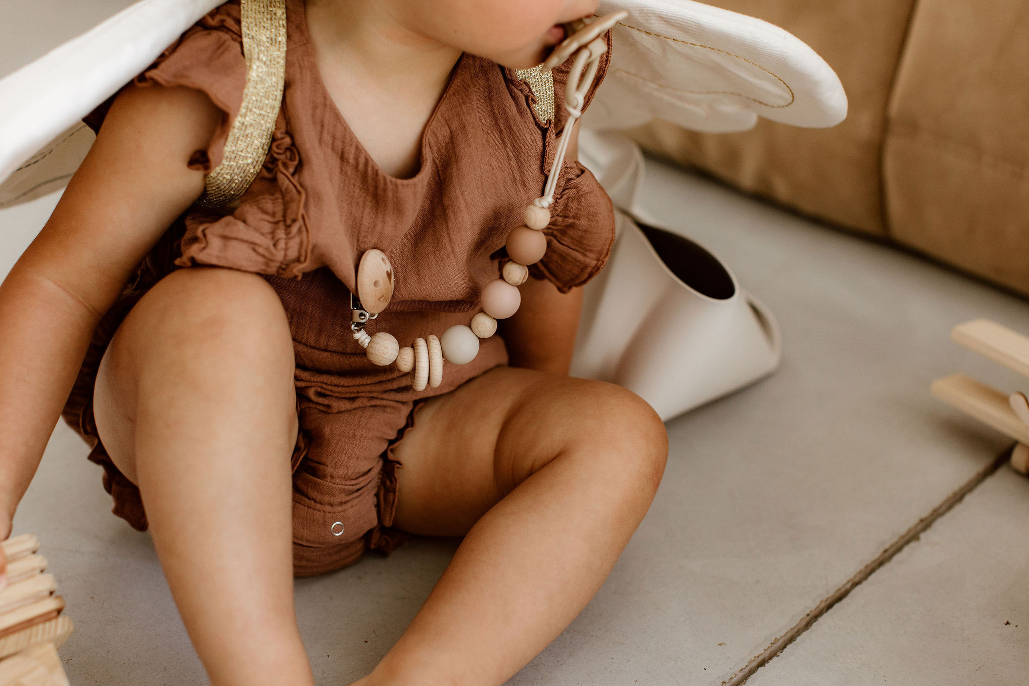 Une attache-tétine en bois et silicone alimentaire pour ne plus perdre la tétine de bébé...